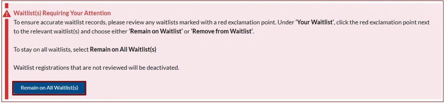 To remain on all waitlist(s), select Remain on All Waitlist(s) at the top of your screen.
