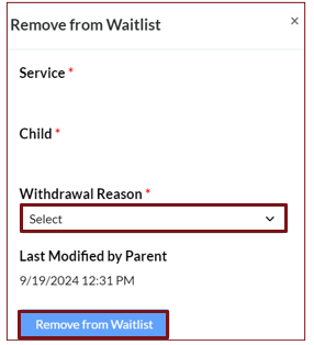 - Choose Remove from Waitlist to remove your child from the waitlist.