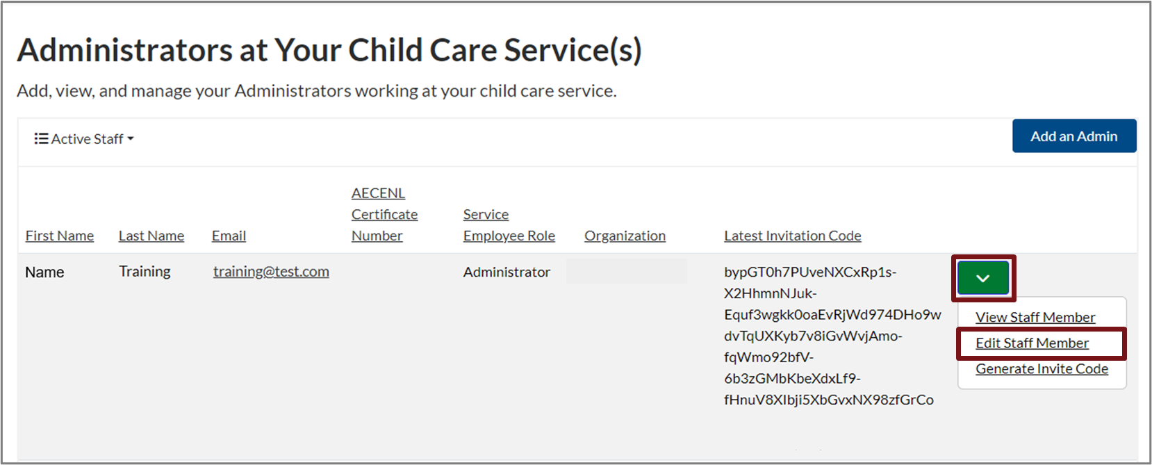You can generate an invite code for your admin to create a username and password for the Early Learning Gateway Service Portal.