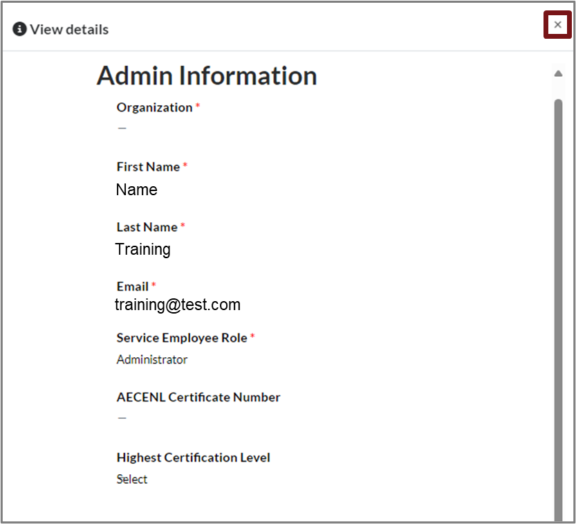 A View Details window will open displaying the ECEs information. To close the window, click the X button in the top right corner.