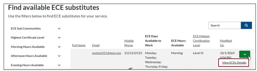 - view the list of ECEs who are registered as an ECE substitute in the Early Learning Gateway