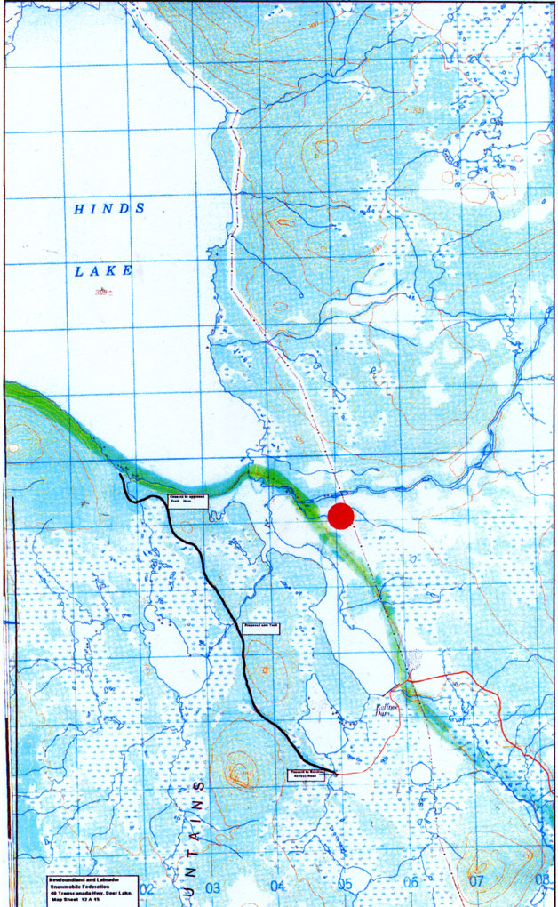 The proponent plans to construct a six (6) kilometre snowmobile trail on the south side of Hinds Lake, in central Newfoundland. The proposed trail will connect the existing snowmobile trail to a road near the Hinds Lake spill dam at the eastern end of the lake. The rational for the trail is to by-pass an unsafe section of trail, originally approved over water and the new trail will skirt around bogs in the area.