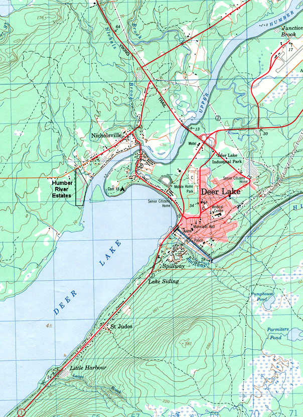 The proponent proposes a resort/residential development on 54 acres of privately owned land which is bounded by the Goose Arm Road to the north, the Humber River to the south, a residential area along Riverbank Road to the east, and agricultural land to the west. Proposed construction includes up to 45 chalets for residential and/or rental units, an administration building, a river front beach house, a service building, a two kilometre access road, a boat launch, and floating dock facilities. The proponent proposes to offer watercraft rentals including sea-doos, power boats, kayaks, canoes, and windsurfers. Construction on Phase One of the proposal is planned for late April of 2004 and includes preliminary roadwork and providing services to individual sites. It is proposed that water and sewer services will be connected to the Town of Deer Lake municipal system. Construction on Phase Two would be ongoing over a five year period and would include completion of roadwork and individual lots for specific businesses.