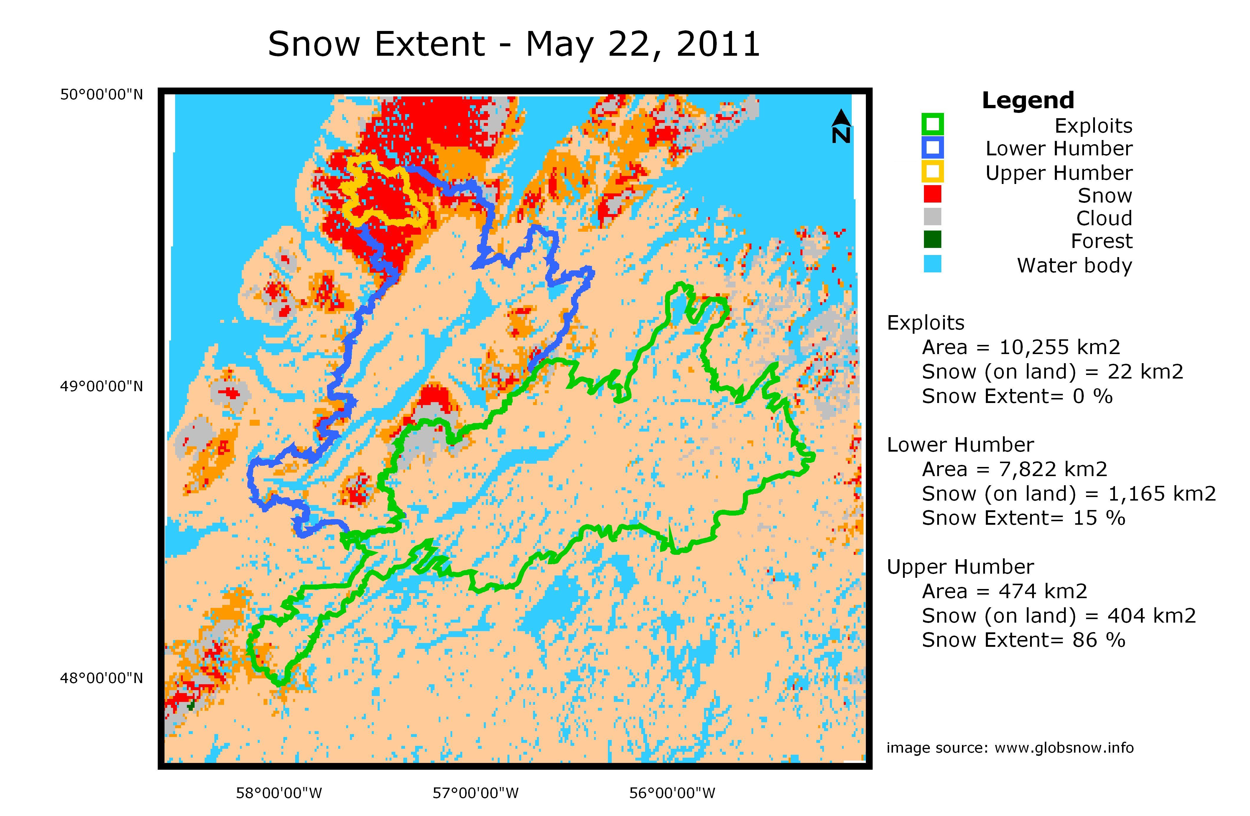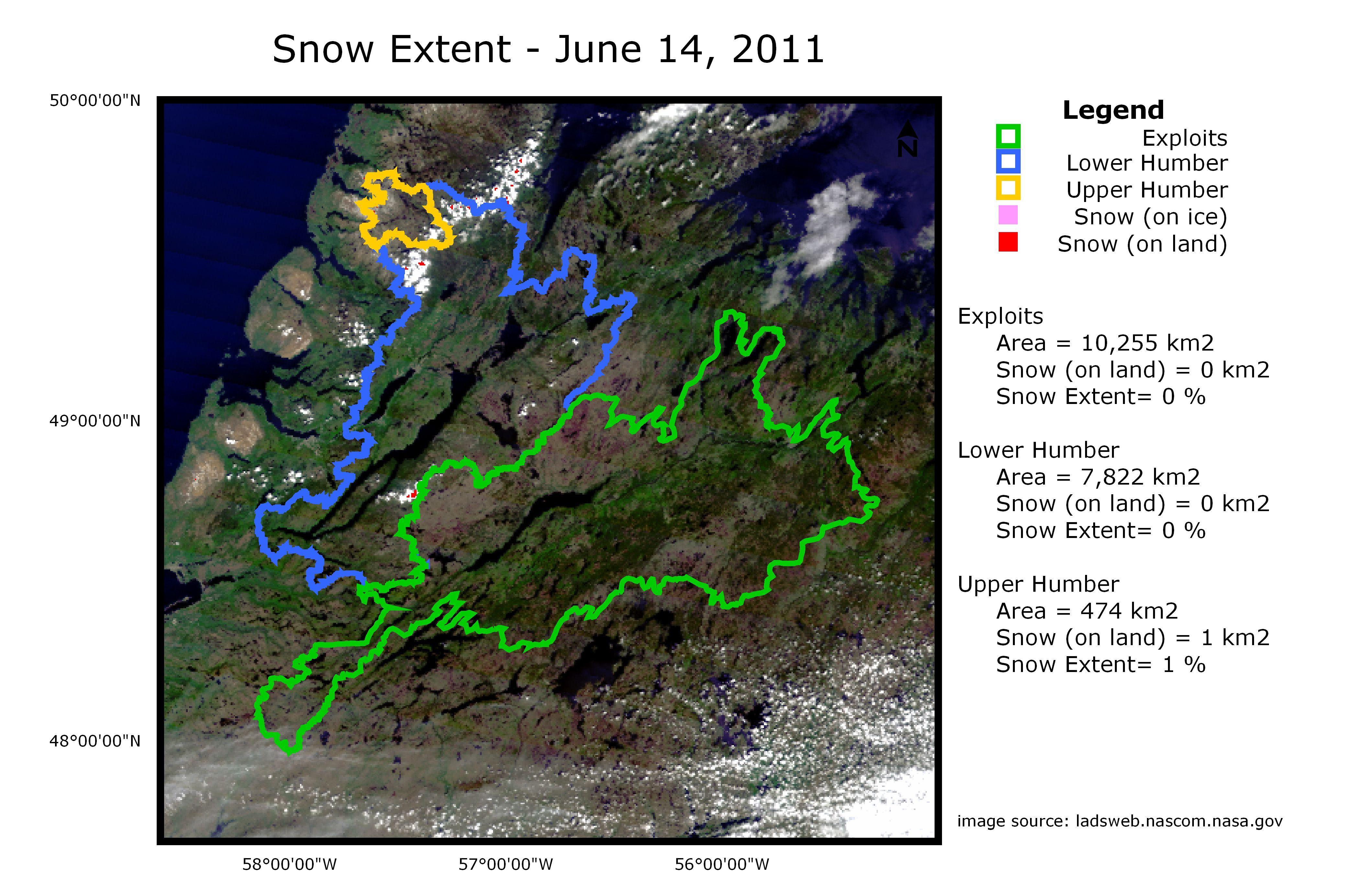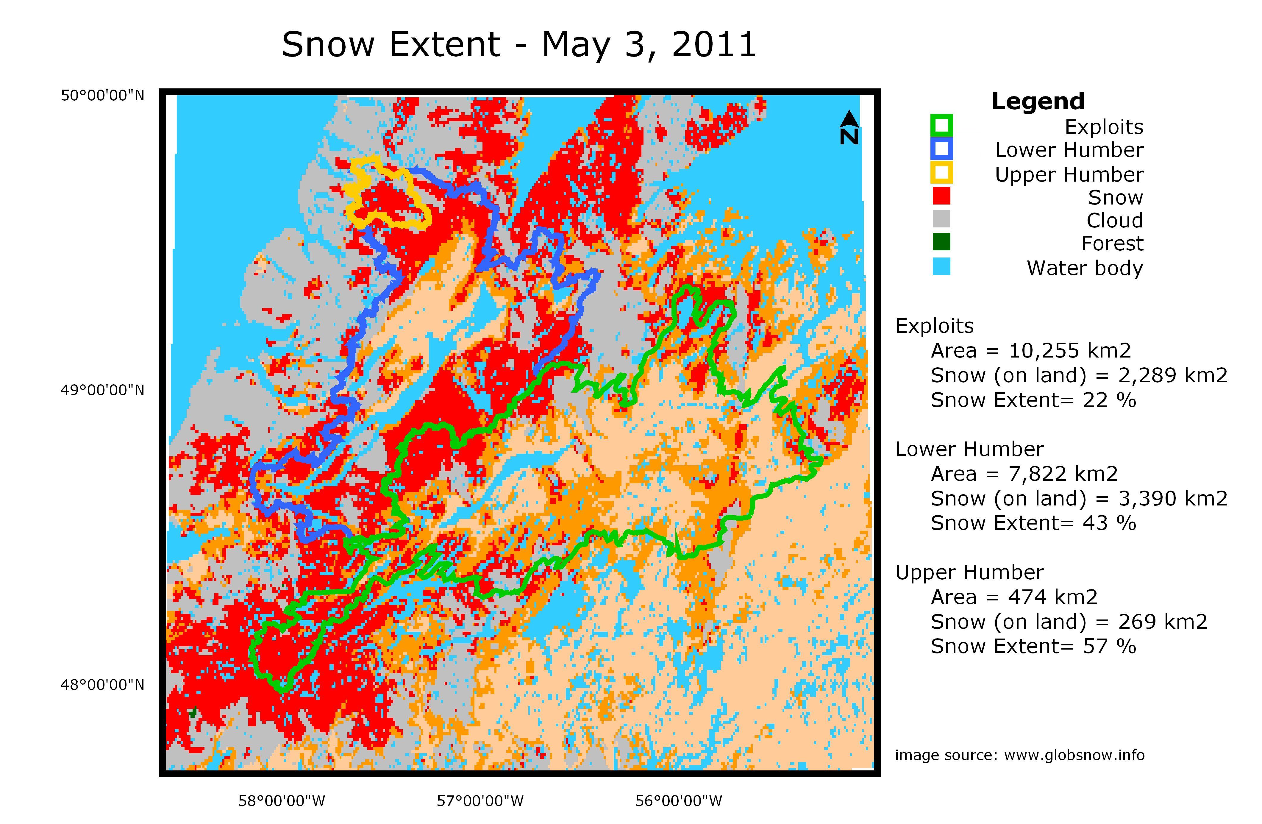 The snow products for the Upper and Lower Humber River Basin and the Exploits River Basin are provided in the following table.