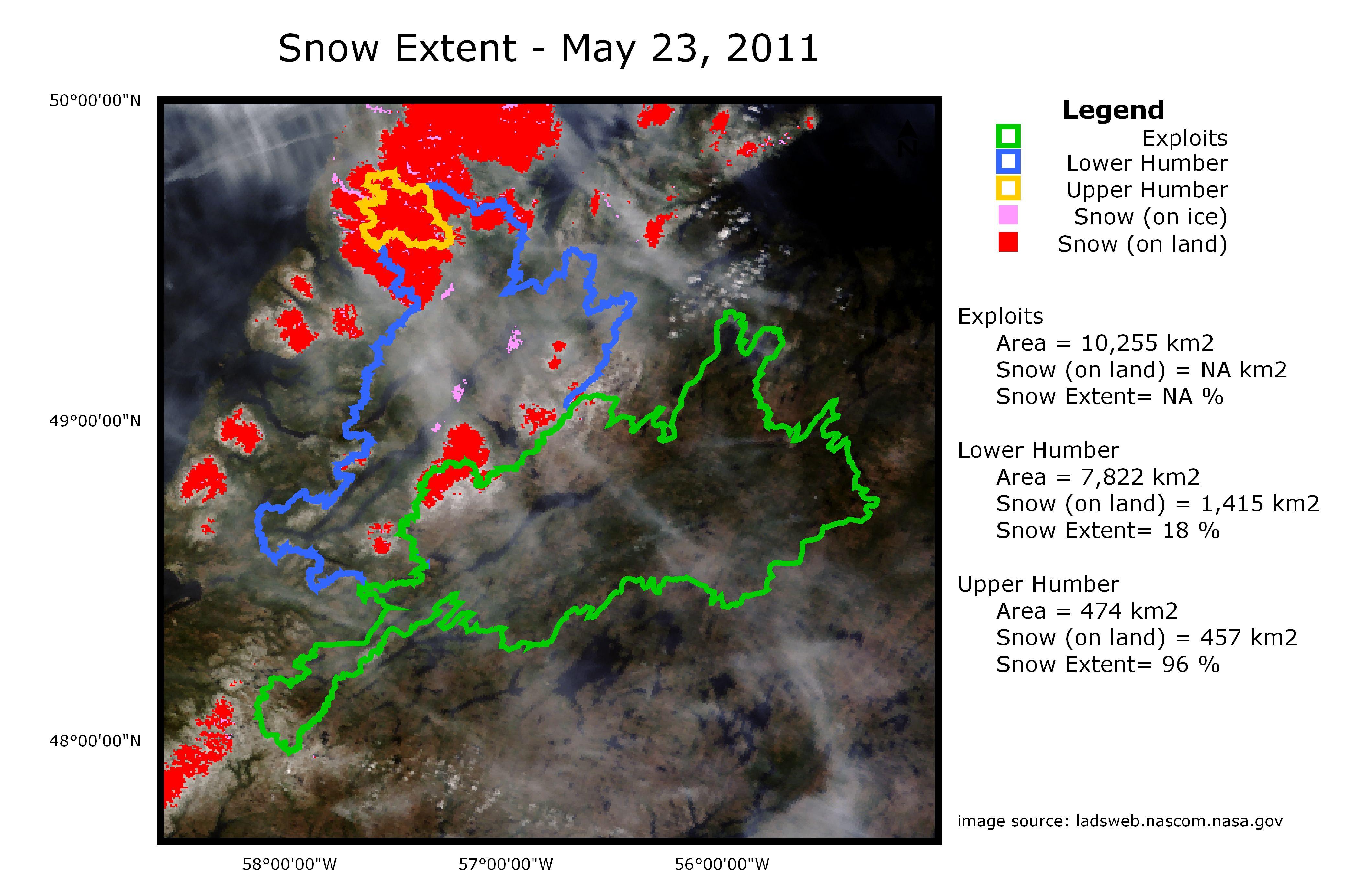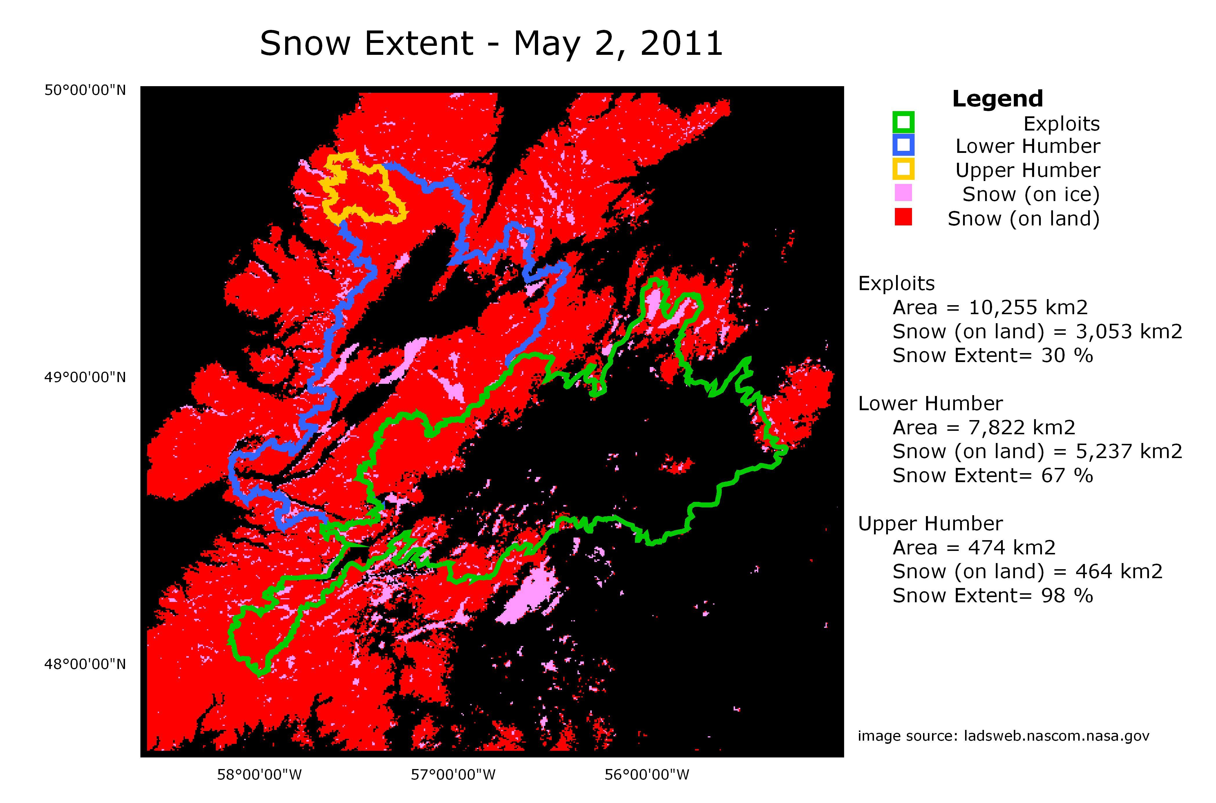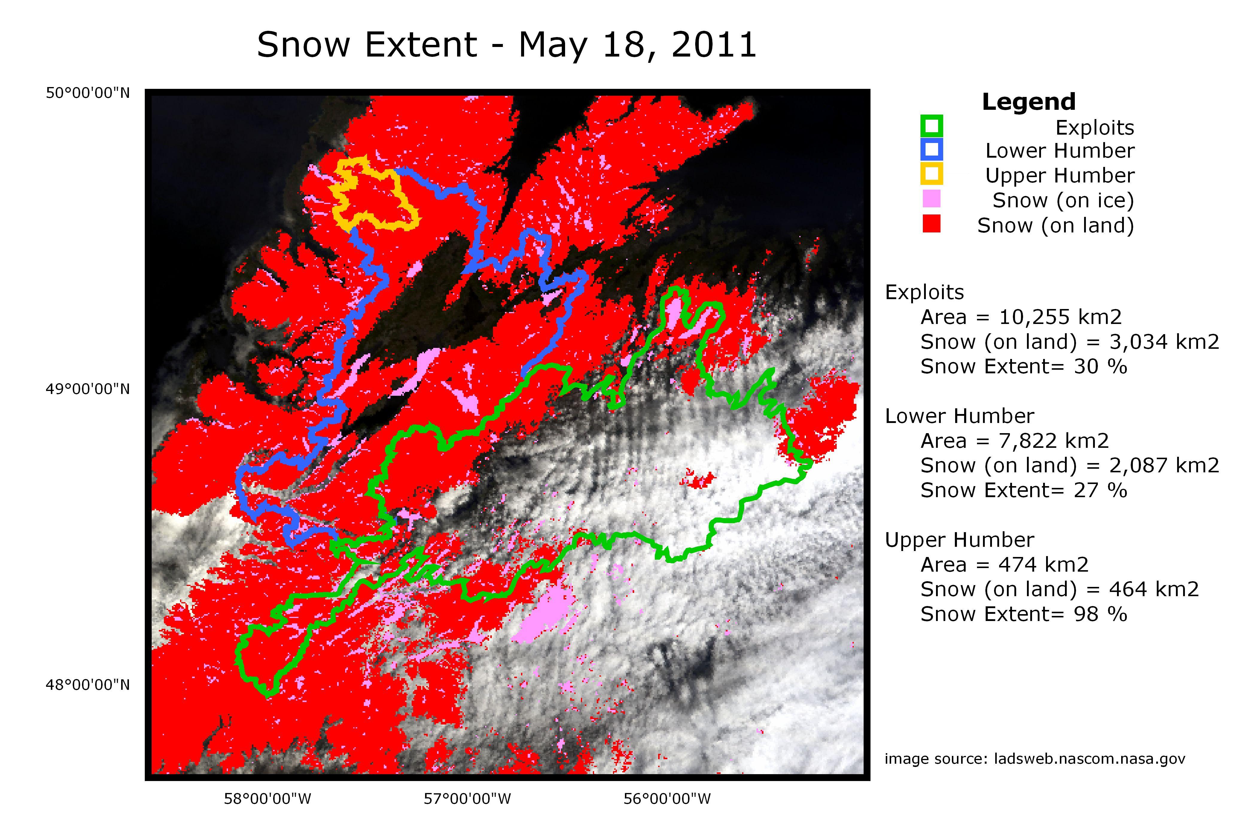 The snow products for the Upper and Lower Humber River Basin and the Exploits River Basin are provided in the following table.