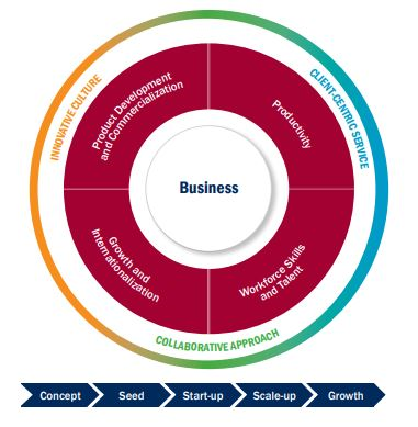 The Accelerated Growth Division is responsible for providing support for business in the critical areas that enable firm-level innovation and remove barriers to growth. The Accelerated Growth Division is providing support across the business continuum, helping companies start, innovate, scale and grow their sales in local, national and international markets.
