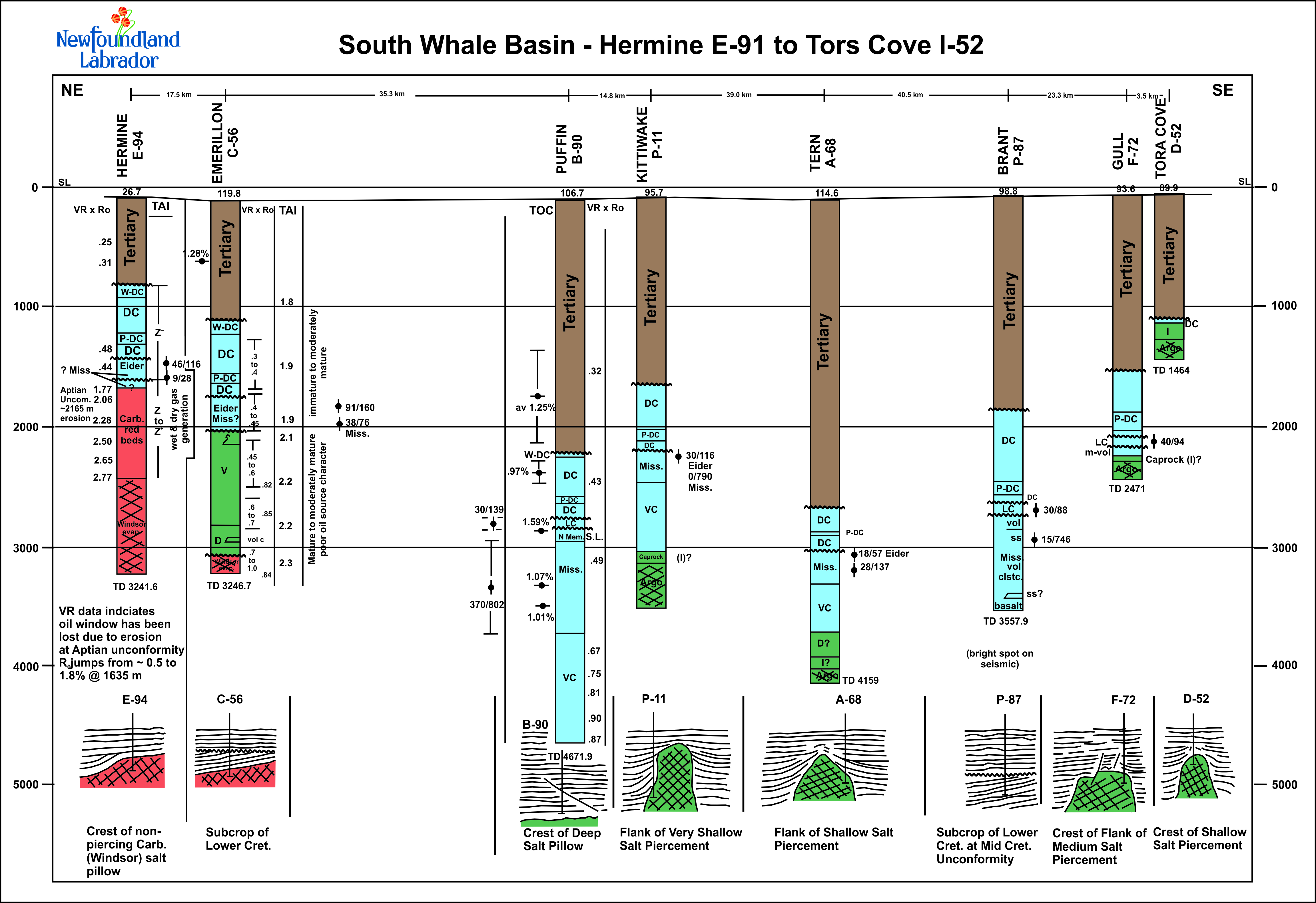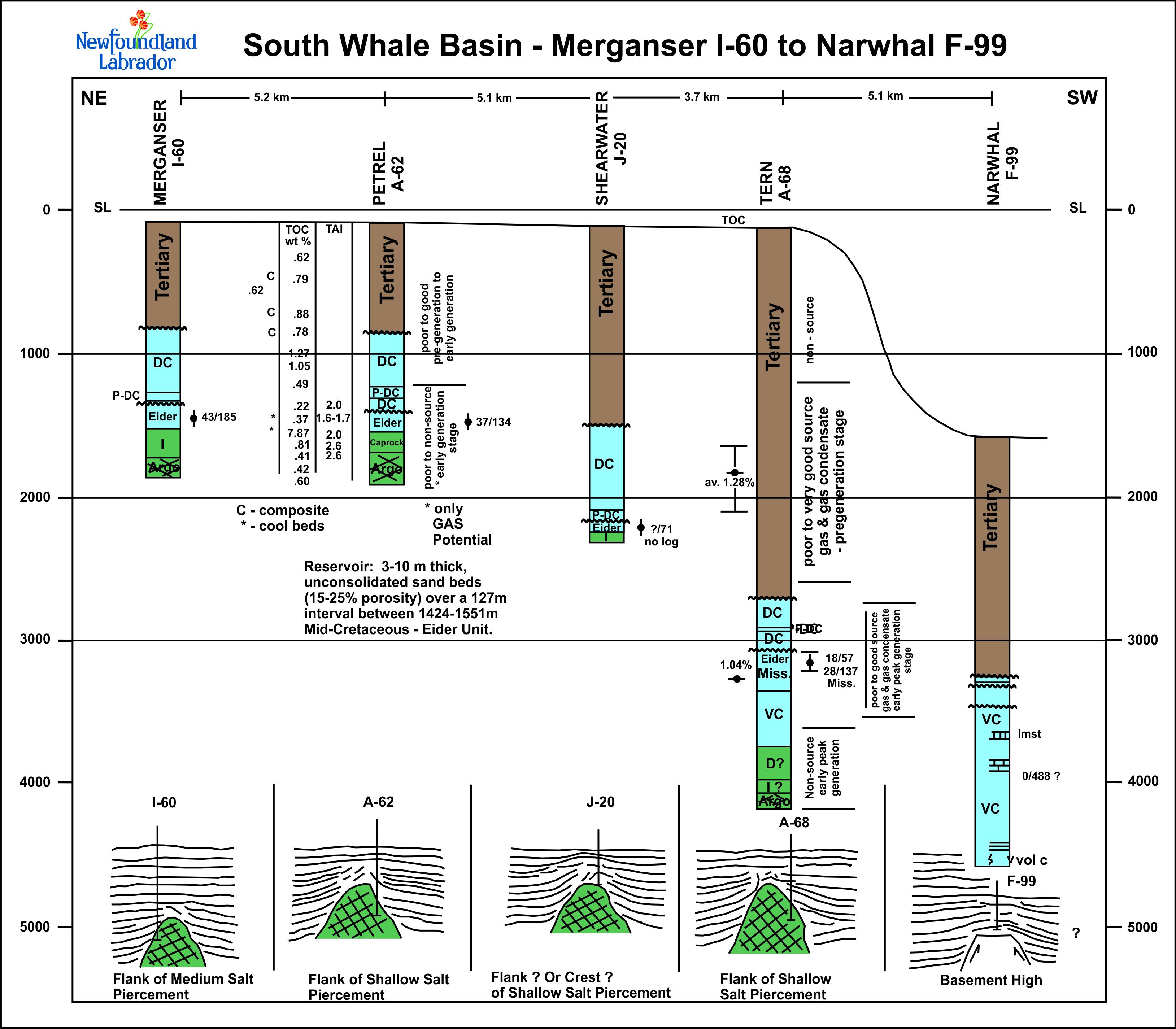 South Whale Basin Well Correlations *All links below will open in a new tab. Hermine E-94 to Tors Cove I-52 Mallard M-45 to Heron J-72 Merganser I-60 to Narwhal F-99