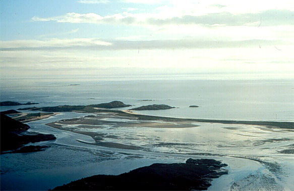 A series of raised beaches shows that the land has risen a considerable amount in this area, near Spotted Islands on the coast of central Labrador.