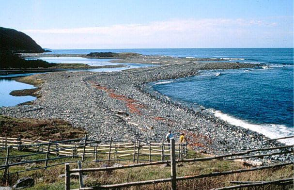 This beach, at Placentia, Avalon Peninsula, consisting of coarse gravel and cobbles formed by wave action and long-shore currents, is an excellent example of a gravel beach.