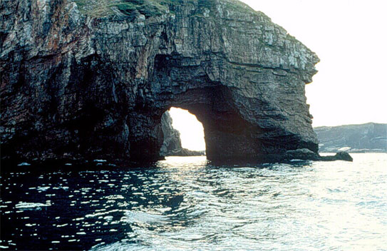 This sea arch, near Cap Perc, Miquelon, has probably evolved from a sea cave.