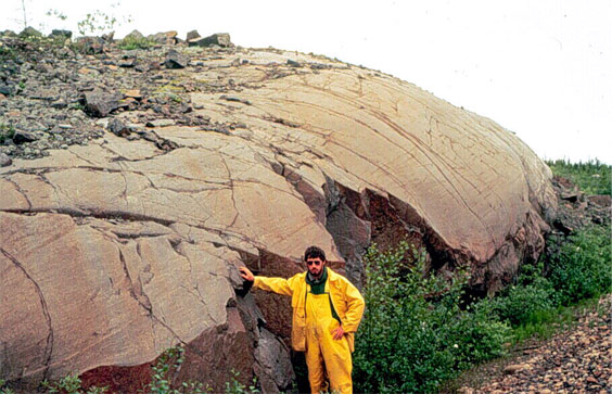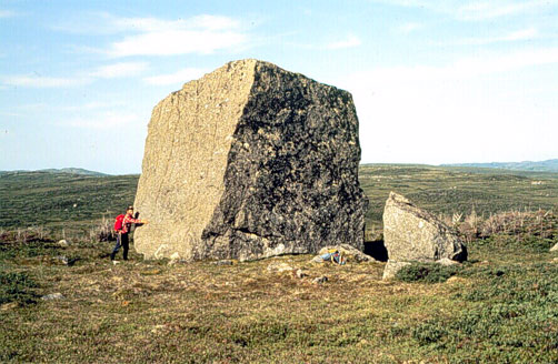This large, angular erratic is a granite boulder that was found near Grey River in southern Newfoundland.