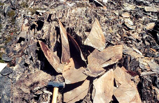 This thin-bedded, red shale, which exhibits a slaty cleavage, is located in the Newfoundland interior 30 kilometres north of the community of Grey River.