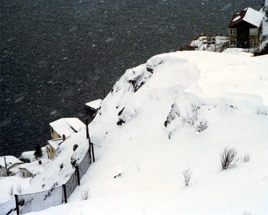Margeret Wells contacted us after seeing a newspaper article on avalanches in Newfoundland. She described her experience as “a night of horror”. Her house stood adjacent to the Piercey and Wells houses completely destroyed, and when the avalanche struck, snow stove in the window at the rear of the house, filling the kitchen with snow. The telephone and electrical lines were still functioning but the police and other authorities were unable to get to the Battery. Mrs. Wells had three children and was pregnant with her fourth. She had to walk to safety through deep snow and in appalling weather, with the considerable help of friends and neighbours. She was reluctant to return to the house later that year, but had little choice, as no alternative housing was available.