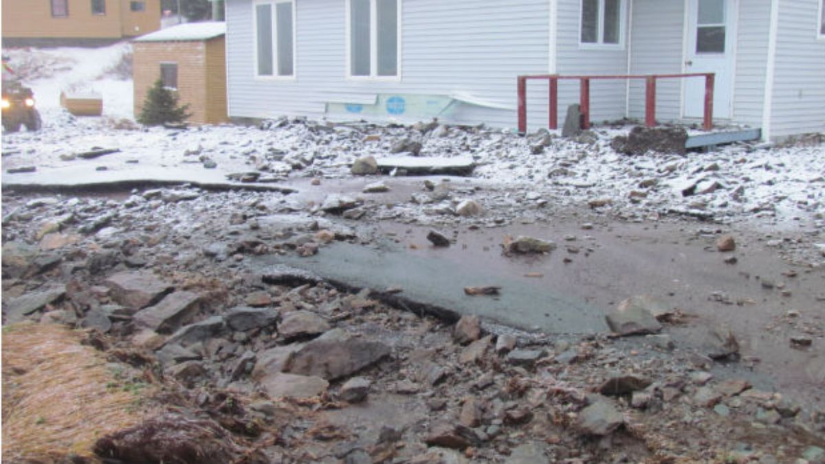 In Manuels, the rock breakwater that protects vessels moored at the Royal Newfoundland Yacht Club has almost completely washed away. There are also reports of serious damage in Spaniard’s Bay and Petty Harbour.