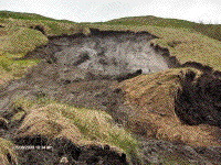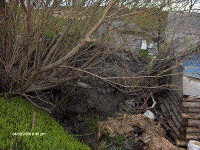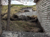 At 3:00 am a large landslide took place from steep slopes behind the community of Trout River. Heavy rainfall had saturated the slope, which contained glaciomarine clay and silt. About 100 cubic metres of material failed as a combination rotational failure/ debris flow. At the base of the hill, the debris flow displaced and damaged two sheds; one stopping less than a metre from a home. The larger shed served as a barrier blocking the material from going into the home, whereas the smaller shed rested against a large tree that also blocked the material from ending up into a second home. Residents in the area, indicate there is a history of similar landslides, where sheds have been damaged and displaced. Further tension cracks were apparent upon inspection and thus five homes below this vulnerable area were evacuated on a temporary basis.