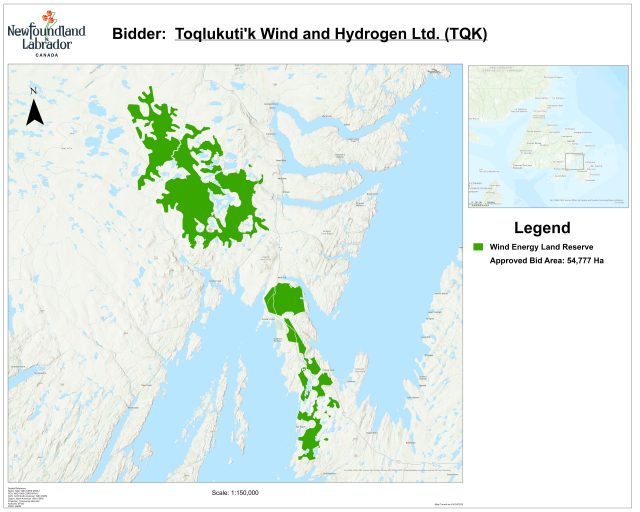 On August 30, 2023, the Department of Industry, Energy and Technology (IET) announced that four bids from four companies were selected through the Crown Land Call for Bids for Wind Energy Projects (Call for Bids) to receive wind application recommendation letters and have been granted the exclusive right to pursue the development of their project through the Government of Newfoundland and Labrador Crown land application and approval process, which includes a referral to Environmental Assessment (EA). Final project details, such as wind turbine locations, will be informed through the Crown lands and EA processes. On August 22, 2025, IET announced that this reserve has been extended to February 28, 2026 and that it has been reduced in size by 132,733 hectares to 381,676 hectares. Overview of Four Projects Selected through the Call for Bids