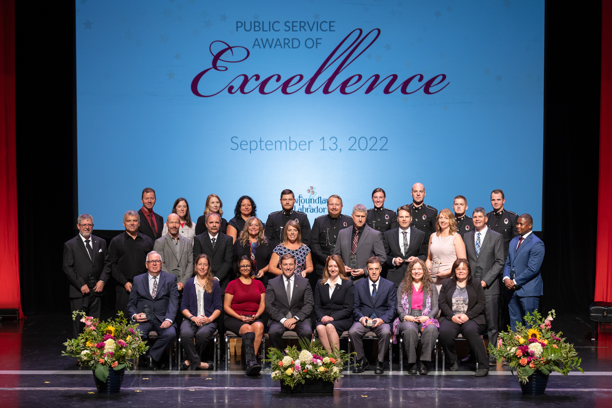 Premier Andrew Furey and Clerk of the Executive Council Krista Quinlan with recipients of the 2021 Public Service Award of Excellence