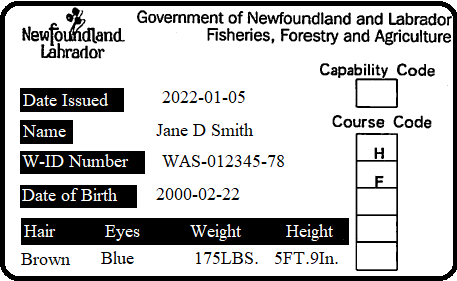 An Outdoor Identification Card is issued to all residents who have completed the Firearm Safety/Hunter Education Course, and to those who previously completed the Hunter Capability Test or the Canadian Firearm Safety Course (in Newfoundland and Labrador only) before April 1996.