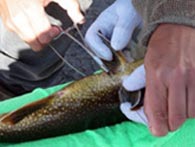 The Wildlife Division’s Aquatic Research Program conducts research projects on aquatic species, including game fish such as brook trout (Salvenlinus fontinalis), lake trout (Salvelinus namaycush) and northern pike (Esox lucious), as well as non-game fish such as suckers (Catostomuus spp.), whitefish (Coregonis spp.) and burbot (Lota lota). Annual surveys and other research initiatives contribute to the Provincial Aquatics Database and Archive (PADA), which currently houses over 68,000 individual fish records.