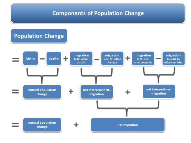 - Interprovincial migration – individuals moving to and from other provinces; and