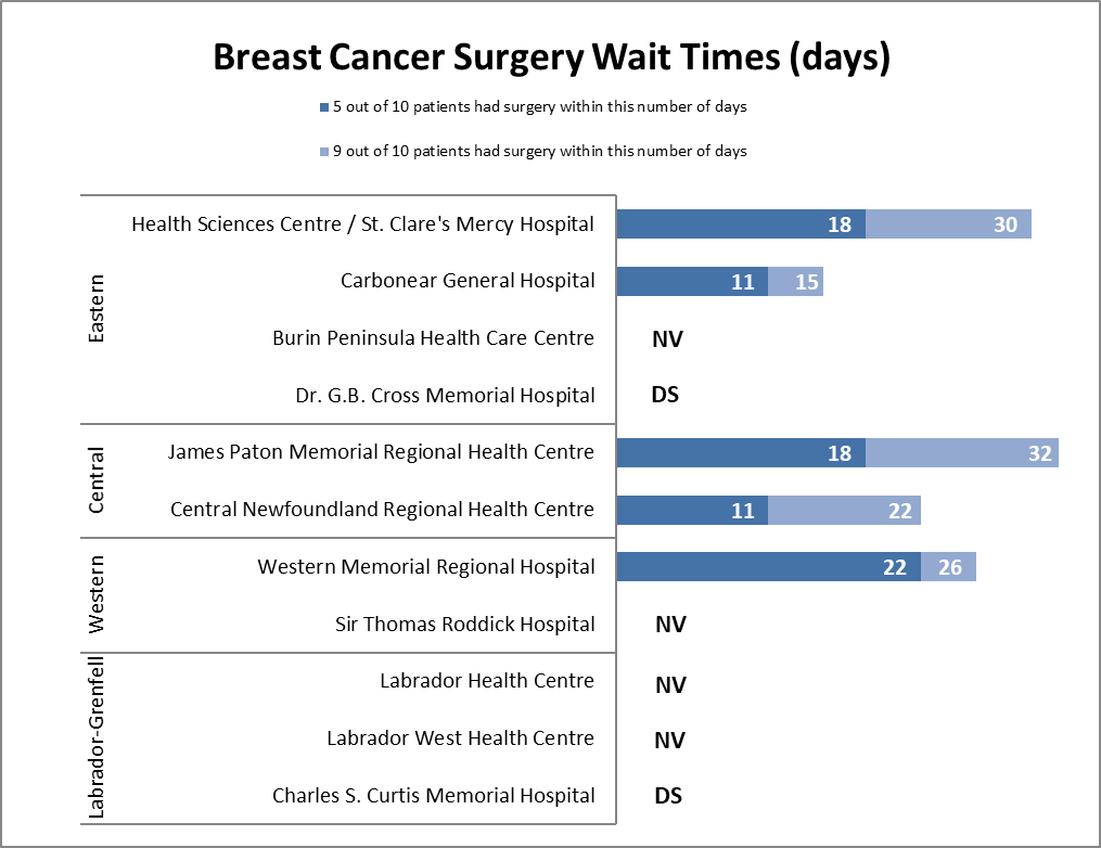 DS: Data Suppression – This indicates that a hospital performed 5 or less cases during the reporting period. To protect patient privacy, wait times associated with these small volumes are not be reported.