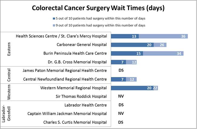 DS: Data Suppression – This indicates that a hospital performed 5 or less cases during the reporting period. To protect patient privacy, wait times associated with these small volumes will not be reported.