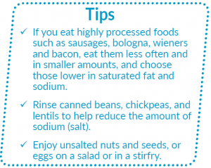 - Use the nutrition facts table on food labels to help choose foods lower in sodium, sugars and saturated fat. For more information, see Canada’s food guide and How to use food labels to make healthier choices.