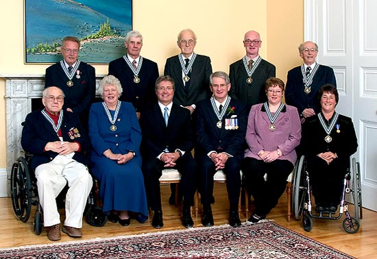 Front row (Left to Right) – Edgar Baird, Susan Patten, Premier Danny Williams,