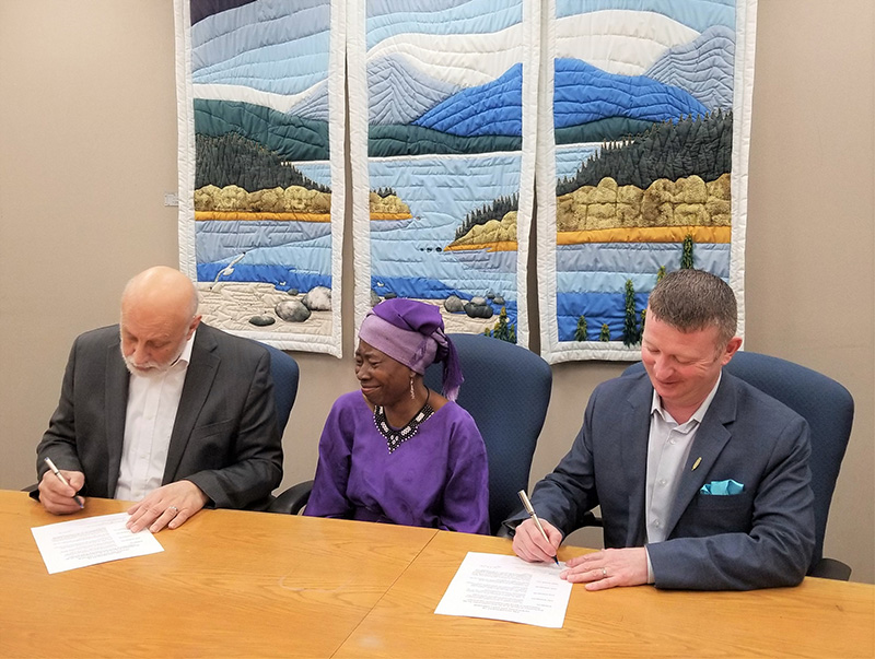 The Honourable Al Hawkins, Minister of Advanced Education, Skills and Labour, and the Honourable Dale Kirby, Minister of Education and Early Childhood Development, join Dr. Lloydetta Quaicoe, founder of Sharing Our Cultures, to proclaim March 21 the International Day for the Elimination of Racial Discrimination in Newfoundland and Labrador.