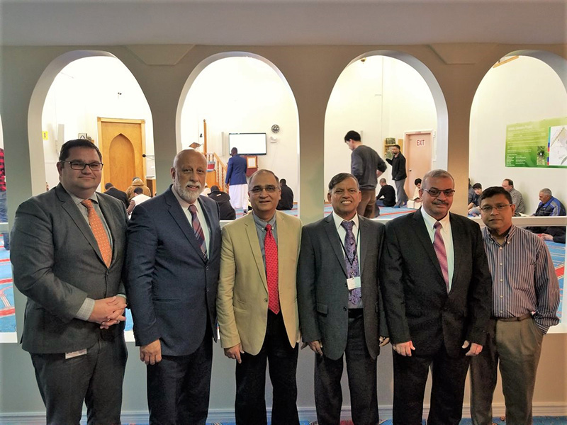 The Honourable Al Hawkins, Minister of Advanced Education, Skills and Labour, and Bernard Davis, MHA for Virginia Waters-Pleasantville, joined leaders of the Muslim Association of Newfoundland and Labrador for a prayer service during Ramadan at the Masjid-an-Noor Mosque in St. John’s. Pictured are, from left: MHA Davis, Minister Hawkins, Mansoor Pirzada, Haseen Khan, Moein Shahwan, and Kamrul Islam.