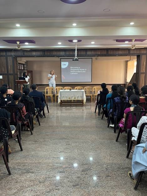 On Tuesday, November 22, the team visited the East West Group of Institutions campus. This visit included meetings with the chairman, executive director, director of academics, and the principal of the School of Nursing and Physiotherapy. A presentation on health employment opportunities was delivered to more than 100 final-year nursing students.