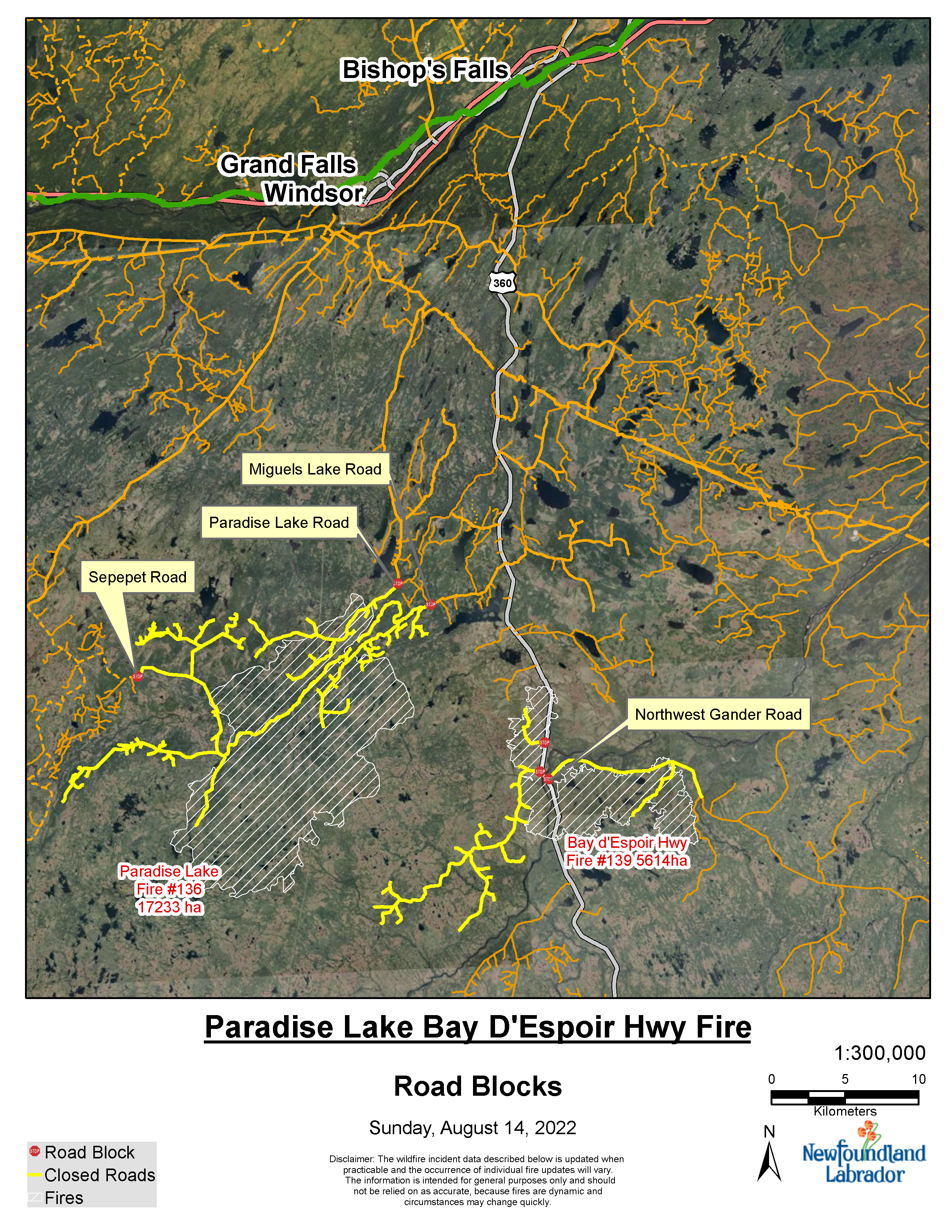 The Bay d’Espoir Highway (Route 360) continues to remain open to traffic. However, not all forest access roads or cabins are accessible.