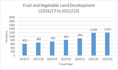 Land Developed for Fruit and Vegetable Production since 2016-17