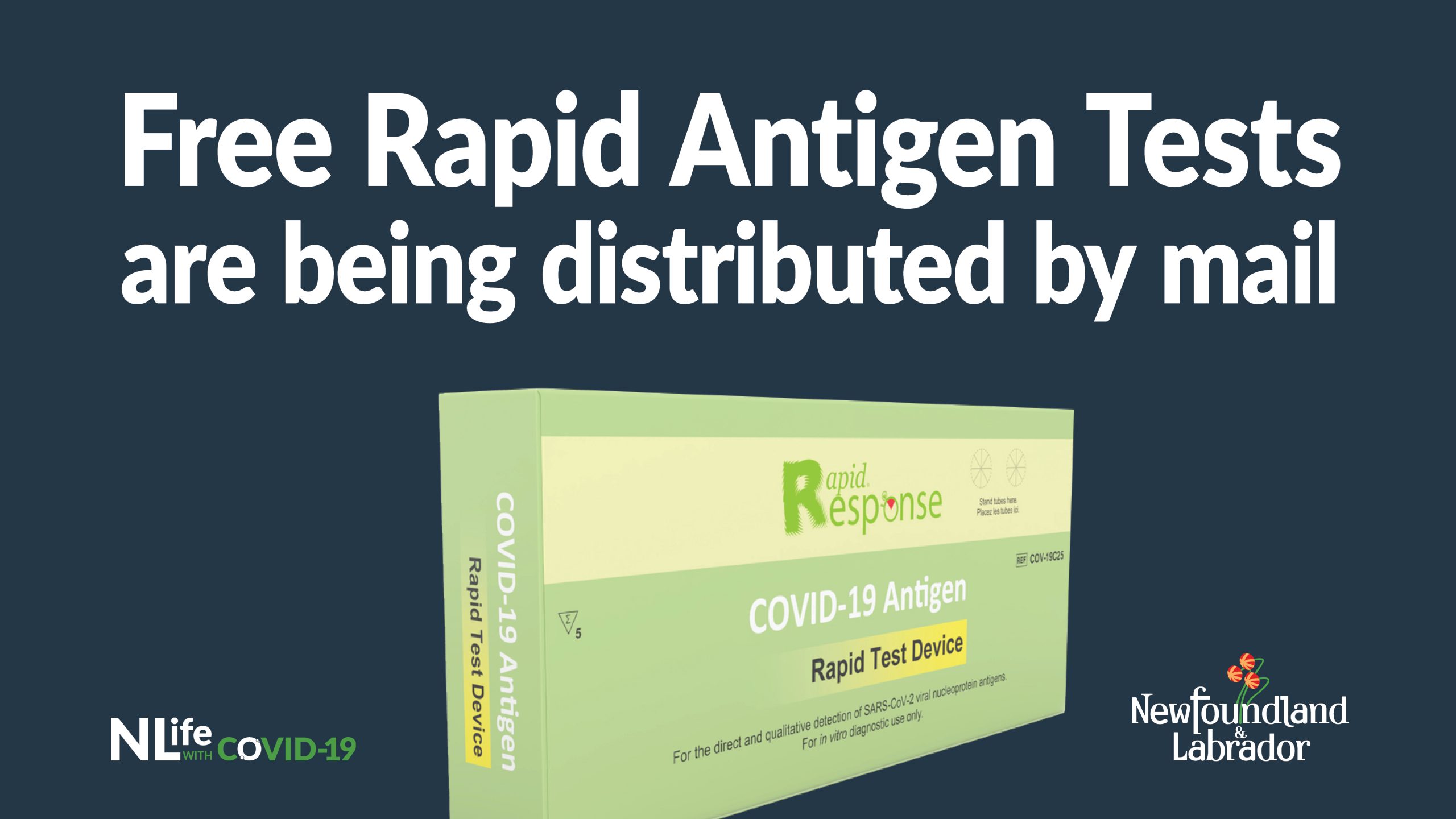 The Department of Health and Community Services will begin distributing free COVID-19 rapid antigen tests to households throughout the province over the coming weeks. The tests will be distributed to households via Canada Post. To ensure widespread community access to rapid antigen testing, rapid antigen tests will also be available in public libraries and MHA constituency offices throughout the province in the coming weeks.
