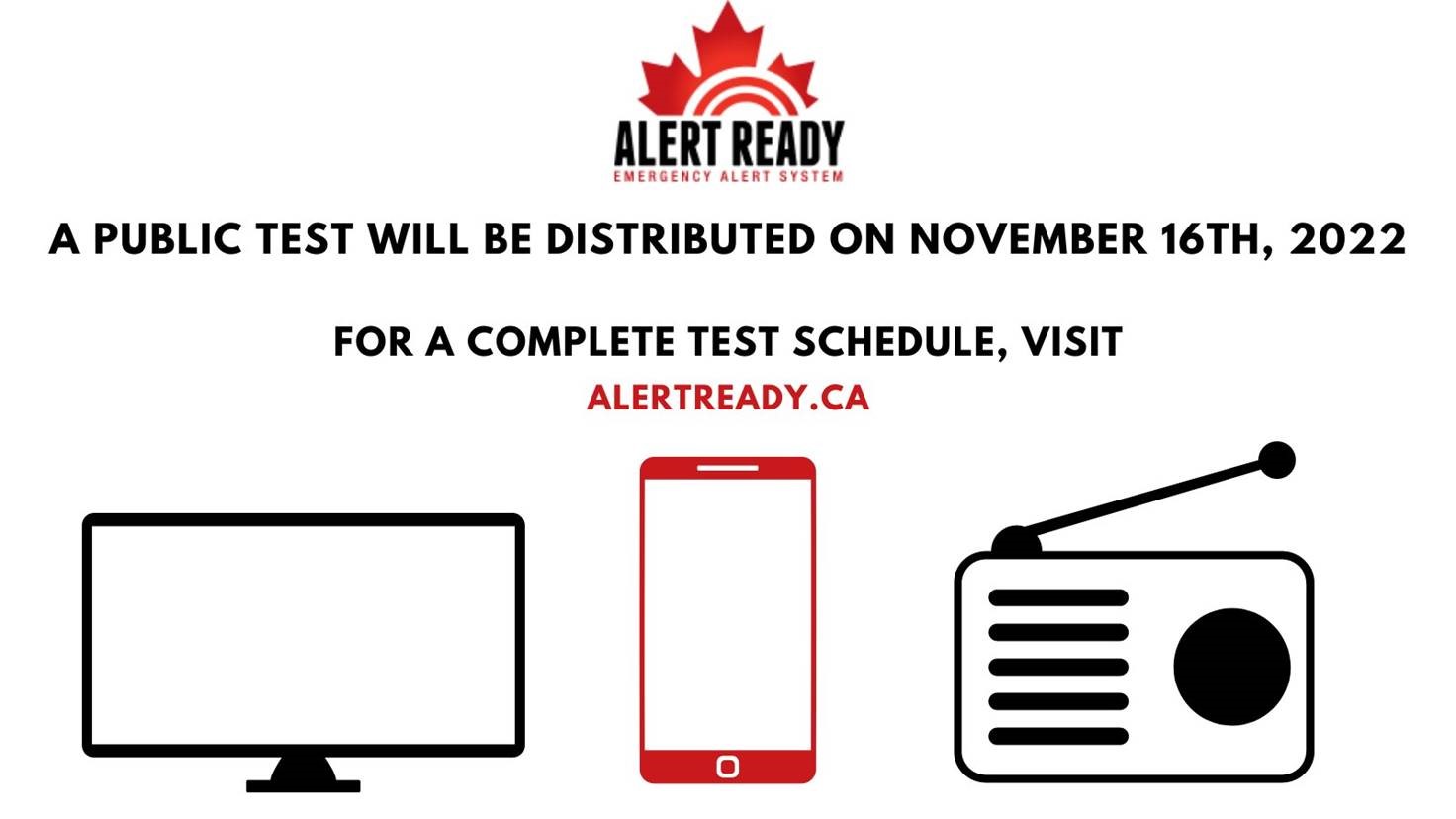 Provincial and territorial emergency management organizations will be issuing public test messages through Alert Ready, the national emergency alerting system, tomorrow (Wednesday, November 16). Newfoundland and Labrador will issue one test message to be distributed over television, radio and to compatible wireless devices at 10:55 a.m. (NST) and 10:25 a.m. in most of Labrador (AST).