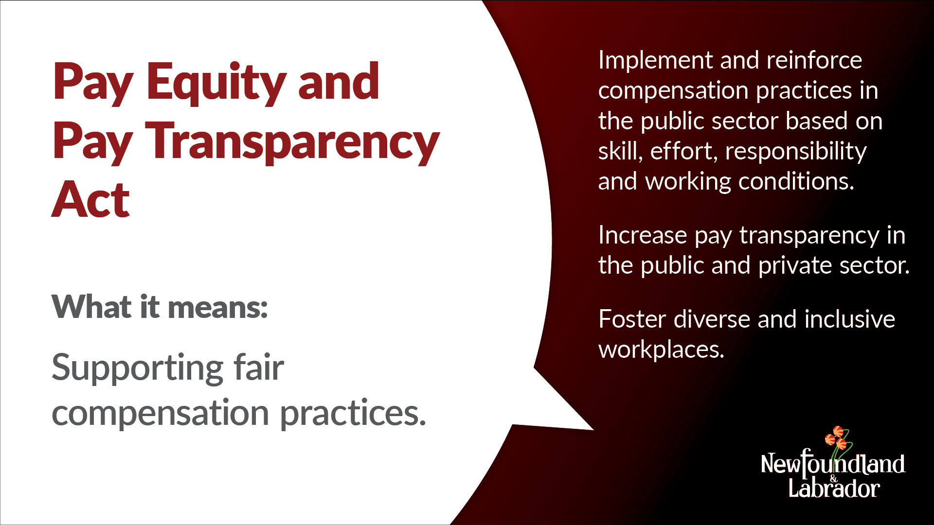 New proposed legislation to address pay equity and pay transparency in the province will receive second reading in the House of Assembly today. The Bill, titled “An Act Respecting Pay Equity for the Public Sector and Pay Transparency for the Public and Private Sectors,” will support equitable pay practices in the province. This proposed legislation builds on the Provincial Government’s ongoing efforts to support women and gender diverse people in Newfoundland and Labrador.