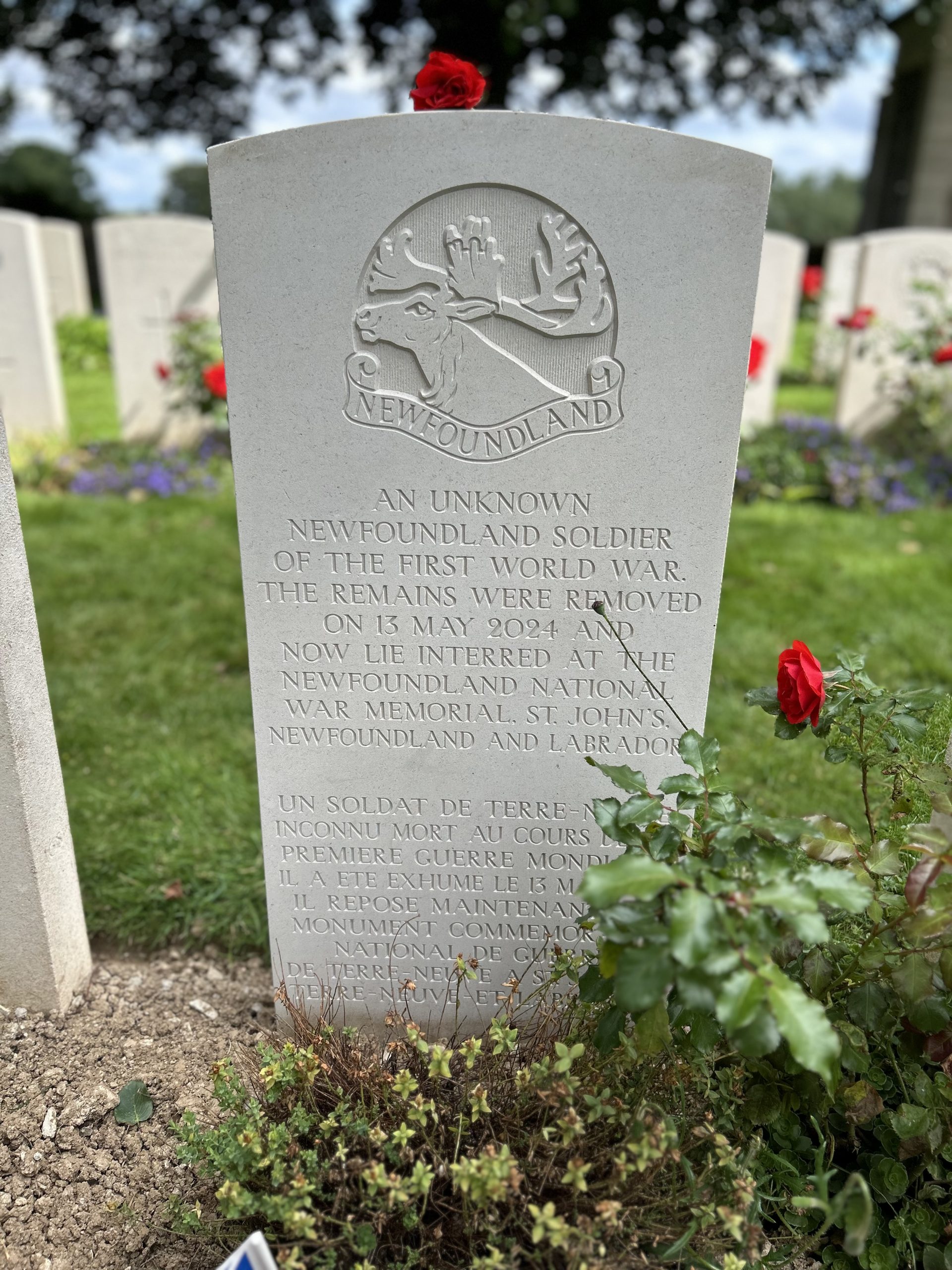 An unknown Newfoundland soldier of the First World War. The remains were removed on 13 May 2024 and now lie interred at the Newfoundland National War Memorial, St. John’s, Newfoundland and Labrador.