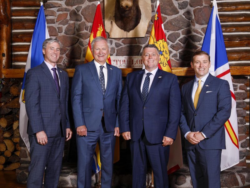 À titre de président du Conseil, Tim Houston, premier ministre de la Nouvelle-Écosse, a accueilli à Pictou, N.É., ses homologues du Nouveau-Brunswick, Blaine Higgs, de l’Île-du-Prince-Édouard, Dennis King, et de Terre-Neuve-et-Labrador, Andrew Furey.