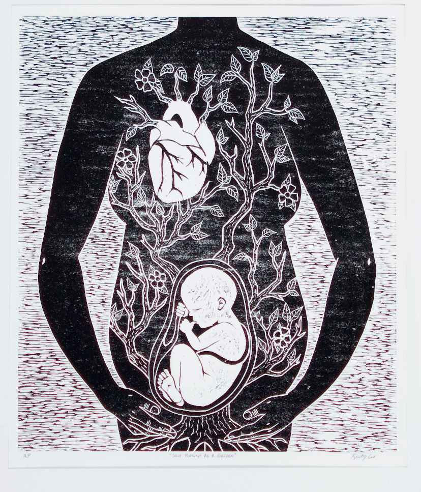 - Kristy Lee, Corner Brook, Title: Self-Portrait as a Garden (wood block print)