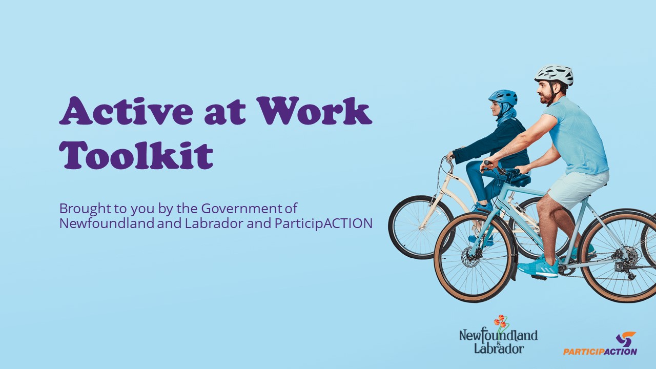 To encourage people to think about moving more while at work with the goal of improving overall health and well-being, the Department of Tourism, Culture, Arts and Recreation, in collaboration with ParticipACTION, has created an Active at Work Toolkit.