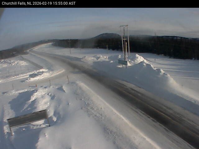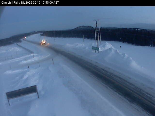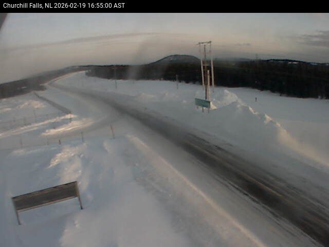 The Churchill Falls weather station is at the Churchill Falls Airport, on Route 500 TLH, pointing East towards Churchill Falls.